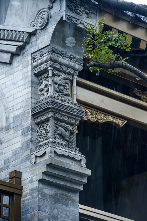 12號(hào)樓主題為獅子,主題來源于三門峽靈寶函谷關(guān),象征“事事如意”的獅子在柱子、平板枋、額枋、卡子花、假梁頭等構(gòu)件均有出現(xiàn)。