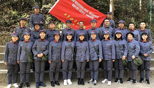 14日,學(xué)員們走上“志仁小道”,在這條曲折山路上,新縣首位共產(chǎn)黨員——王志仁奔走宣傳革命思想、努力開展革命活動(dòng)。在爬山的途中路遇陡坡,旁邊的隊(duì)友立刻伸出援助之手;渴了,沒事我的水給你先喝……身著紅軍服,腳走崎嶇道,學(xué)員們仿佛置身那段熱血?dú)v史中,用自身行動(dòng)弘揚(yáng)革命先輩不畏艱險(xiǎn)、頑強(qiáng)斗爭的光榮傳統(tǒng)。 下午在新縣鄂豫皖蘇區(qū)首府烈士陵園,全體學(xué)員懷著肅穆的心情向革命先烈們敬獻(xiàn)花籃并真誠致禮,在革命烈士事跡陳列廳重溫入黨宣誓。陳列的一個(gè)個(gè)實(shí)物、一幅幅畫卷,將蘇區(qū)可歌可泣的英雄事跡清晰地展現(xiàn)在大家面前,舉起右手,莊嚴(yán)宣誓,英雄們的感人事跡激勵(lì)著我們,在來之不易的和平年代,用實(shí)際行動(dòng)來弘揚(yáng)革命先輩用鮮血和生命凝結(jié)的紅色文化。