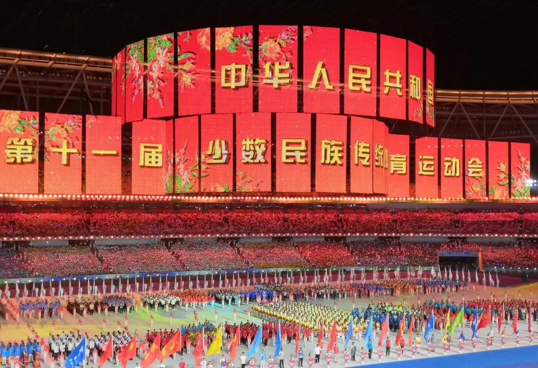 20時50分許,汪洋宣布:中華人民共和國第十一屆少數(shù)民族傳統(tǒng)體育運動會開幕!