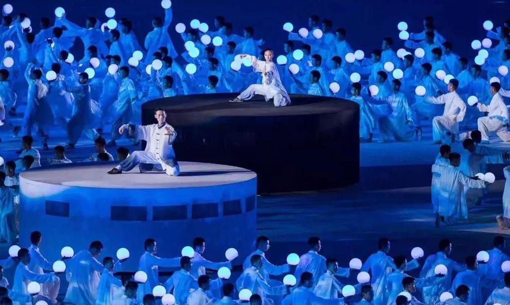 5塊總面積,超過3000平米的輕型透明網(wǎng)幕,130余臺高清投影機覆蓋上萬平米場地,通過威亞的技術(shù)手段和地面投影相呼應。地面、空中、立面多維度的表演空間,將各種特色民族元素呈現(xiàn)出來,呈現(xiàn)了各族人民的幸福生活,書寫出一張張民族文化名片。當現(xiàn)場各族人民跳起歡快的舞蹈,當各民族美麗的服飾在現(xiàn)場轉(zhuǎn)出最絢麗的弧度,展現(xiàn)出各民族團結(jié)奮進、朝氣蓬勃的精神風貌。作為河南特色的少林和太極兩個重要元素也在本次開幕式精彩亮相,由塔溝武校數(shù)千名演員演繹。隨著音樂節(jié)奏的轉(zhuǎn)換,他們變幻各種造型,動靜結(jié)合、氣勢恢宏,讓觀眾更加了解精彩河南。