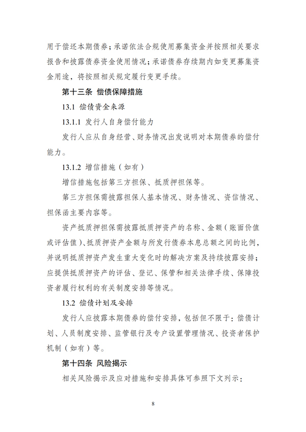 五、各期債券發(fā)行前,發(fā)行人應(yīng)公開(kāi)披露募集資金擬投資的項(xiàng)目清單和償債保障措施。